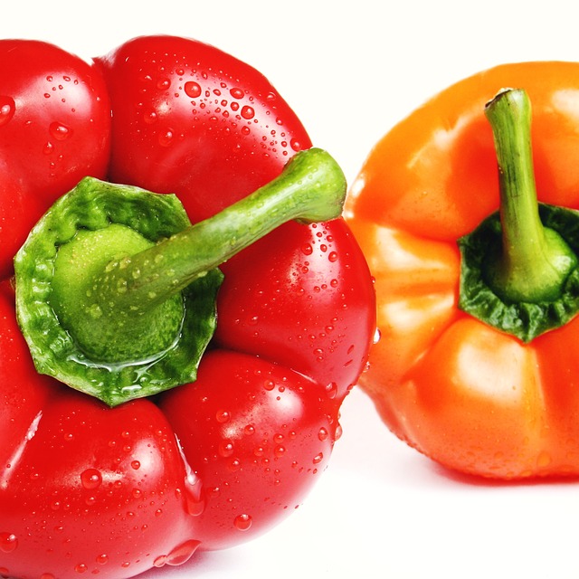 파프리카에는 비타민C 가 100g 당 375mg 이 함유되어 있어요 특징으로는 열량이 작고 색깔별로 함유된 영양성분이 조금씩 다릅니다 대표적 효능으로는 다이어트 와 항암작용에 도움을 줍니다 식이섬유가 풍부하여 변비와 소화개선에 효과가 있고 베타카로틴이라는 성분은 비타민A의 전구물질입니다 안구 건강에도 도움을 주어 안구건조증, 야맹증 같은 질환 예방에도 도움이 됩니다 앞에서 말한 항암 효과는 라이코펜과 베타카로틴이라는 성분이 혈관과 관련된 질환 예방과 암세포가 빨리 자라지 못하게 하는 도움을 주어 항암에도 도움이 됩니다.